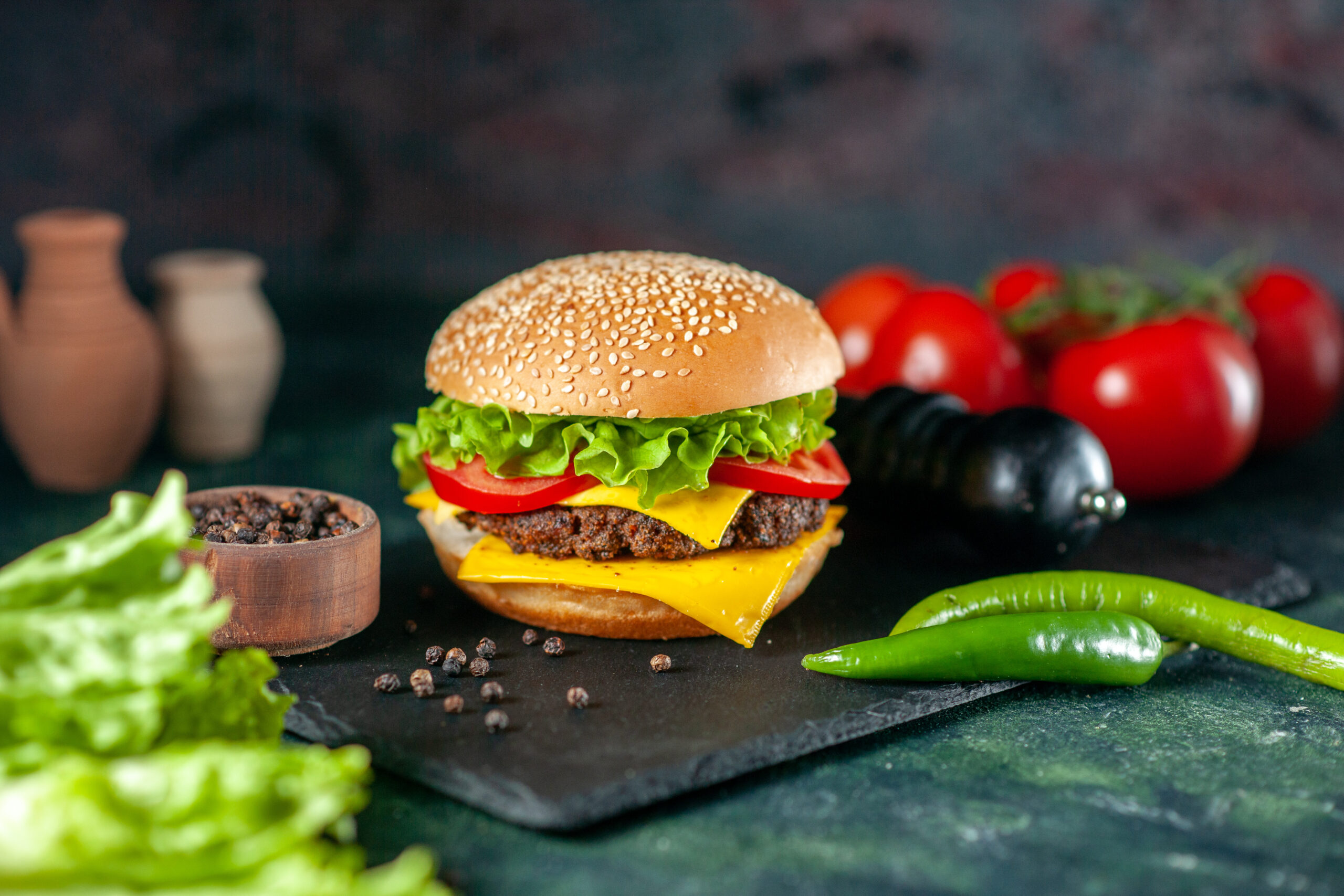 Mix vegetable patty with gooey cheese, smoky grilled onion, fiery jalapefios, creamy smashed avocado, crisp lettuce, ripe tomato, & bold BBQ and zesty aioli sauce.
